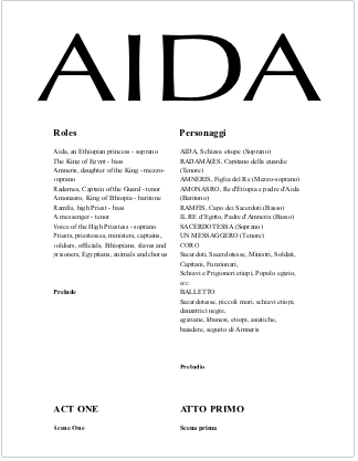 Aida is one of the grandest of all Verdi operas. It premiered December 24, 1871 in Cairo, Egypt in fulfillment of a commission from the Khedivial Opera House.