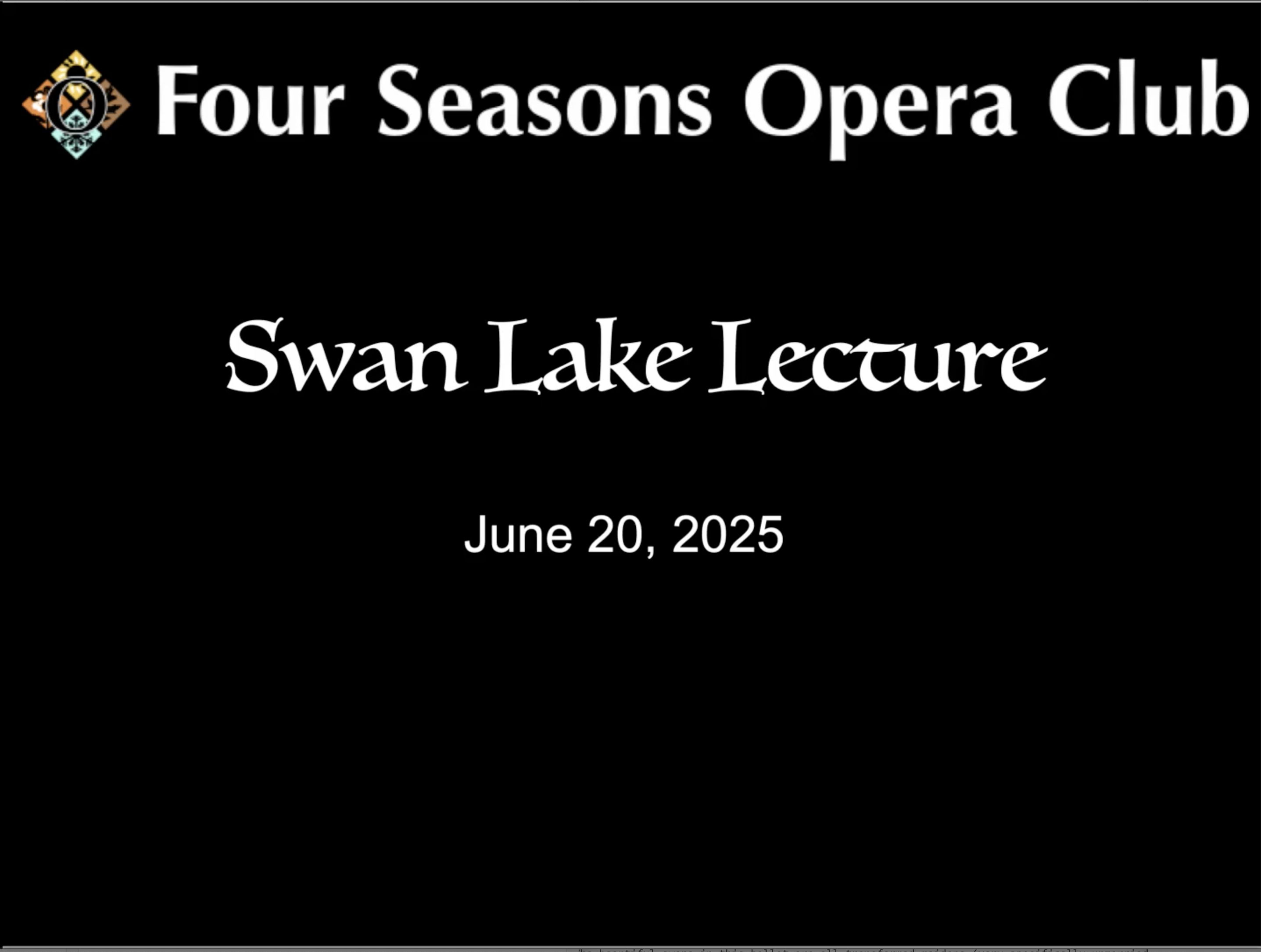 Here is a lecture for the Swan Lake ballet. No need to view this if you have a good understanding of what's going on. That being said, most people don't know Odette from Odile, or who von Rothbart is. If that's you consider viewing the lecture.